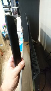 こちらが当店に展示しました4K有機ELビエラです。で、どれだけ薄いか・・・