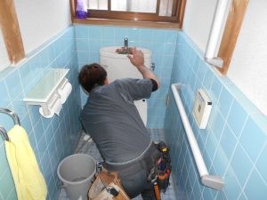 しっかりと固定し給水接続してアラウーノの取替完了です。