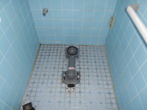 既設便器の撤去です。今回は排水芯が500mmありましたので、リフォームタイプの排水配管セットを使用します。撤去後、フランジを残した状態です。