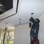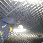 いつもお世話になっている、お客様からのご依頼で、某企業様のイベントルームのダウンライトの取替えと、配線器具の取替え工事を致しました。天井の塗装工事と壁クロスを貼る為に、既存器具類の撤去を就業時間を終えてから開始。約2時間で作業終了。