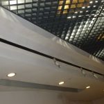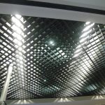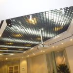 改修前の配線器具とダウンライト天井は折上げになっており、メッシュグリルの上にも10台のダウンライトが付いています。
