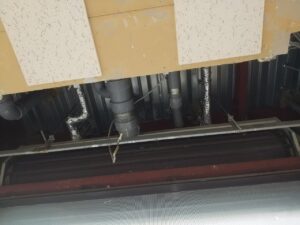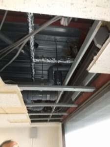 シャッター巾以上に開口したのですが、シャッターの内側に2階のトイレの排水管や給水管が・・・。とりあえず軽天下地も切り落とししてこの日は完了。