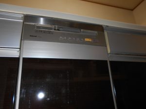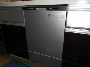 こちらが既存の食器洗い乾燥機です。キッチンは旧のナショナル製の対面キッチン。食器洗い乾燥機の巾45cm奥行は60cmのタイプです。10年を経過し調子が悪くなり交換することになりました。