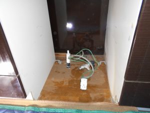 本体を乗せている台枠も撤去。食器洗い乾燥機のスペースは給排水管と電源だけになりました。