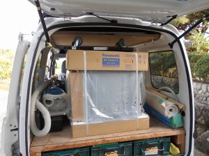 お客様のご都合で夕方5時頃からスタート。撤去から新しい食器洗い乾燥機の取り付け完了まで90分の作業でした。最後に試運転をし片付けが終わったのが夜の7時前でした。