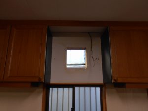 既設換気扇の撤去作業です。縦・横幅ともピッタリなサイズでの商品・部材を発注しこれから取付です。
