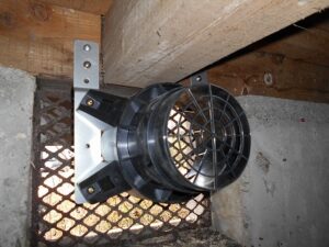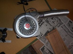 発見しました。左写真です。セイホープロダクツさんの床下換気扇でした。排気型・拡散型・撹拌型等色々ありました。排気能力もセットで20坪までとなっています。しっかり排気出来そうです。今回は右写真の他メーカーの撹拌装置がすでに設置してあったため、セイホープロダクツさんに確認の上、排気型2台セットを取り付けました。