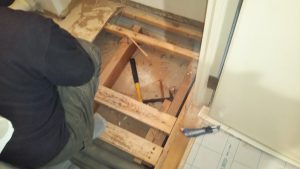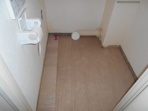 弊社の仕事はこれで終わる予定だったのですが、追加工事として洗濯機用水栓金具の取替を私が致しました。あとトイレの床鳴りが酷いので、そちらの改修も弊社でとのことで急遽弊社の大工に改修をさせました。