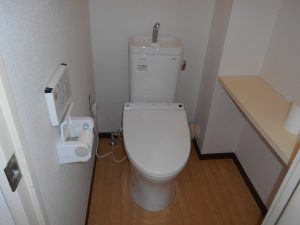 このあとトイレのクロスとクッションフロアーはベース工事の工務店様がされて、最後に弊社でトイレを復旧させました。