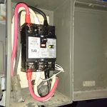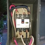 今度は配線にターミナル端子を圧着し取り付けて50Aの漏電ブレーカに付け替え、繋ぎこみをし取替え完了です。最後に点灯試験をして竣工。