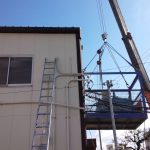 配線は重量運搬業者がブレーカーを切って切り離し機械をクレーンで2階から上記の写真のように搬出しております。