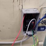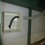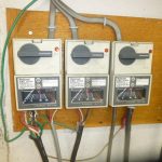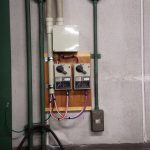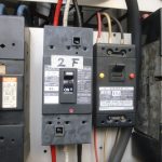 左の写真は2階に付いていた幹線のブレーカーを収めいていた鉄のボックスです。右の写真は1階へ移動した2台の機械のスイッチです(ハイプロスイッチと言います)