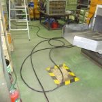 前日まで機械を操業されていた事と機械の位置の墨出しがまだなので、ぎりぎりまで機械側の配線工事は出来ませんでした。