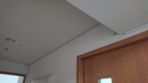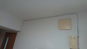 マンションで梁が有る為、浴室の点検口から天井裏を隠蔽配線できないのでモール工事となりました。VH-RMと補助音響装置取付部までの約8Mをモール取付です。