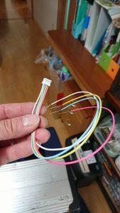 VH-RM親機と補助音響装置を繋ぐコネクターです。4本の線の中で今回は補助音響用のピンクと黄緑の線を使用します。先程配線した通信線と結線しコネクターに差し込みます。