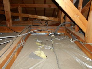 こちらのお客様宅は水廻りがすべて2階なので、このように天井裏が広くなっていますので配線は楽でした。
