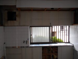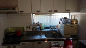 1・2日目は既設キッチンの解体撤去及び水道・電気・ガス工事です。まずは、既設キッチンの解体撤去です。