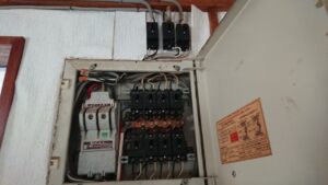 その後、給排水の移設及びビルトイン食器洗い機用に給排水増設工事をし、並行してキッチンの電気工事です。IH・食洗・家電用に専用回路を増設し、配線隠蔽や分電盤取替等の電気工事をしました。ガス工事では、キッチンのガスプラグ止めとリビングにガスコンセント増設工事を行いました。