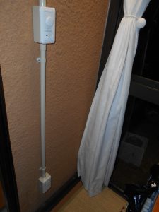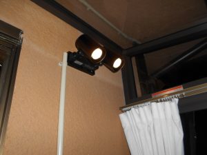 取り付けた照明は2灯のスポットライトです。自在に角度を変えて照らすことが出来ます。テラスだけに・・・