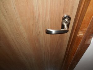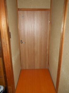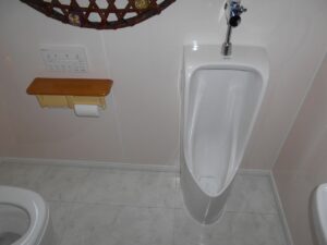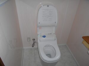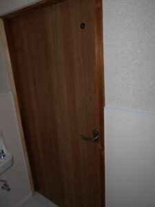 最後にドアを吊り込んで今回のトイレ改修工事はすべて完了です。解体から竣工まで4日の工事でトイレの事で不自由をかけましたが、施主様のお宅には3か所のトイレがございますので、その点では焦らず余裕を持って工事が出来ました。特にトイレのフロアーには床鳴りなどの心配をしておりましたので、大工作業には時間をかけて丁寧に作業をしてもらいました。
