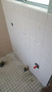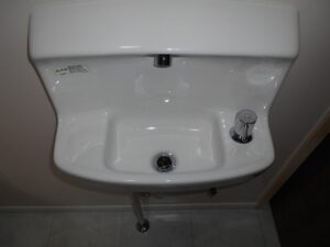 水回り設備設置後です。ペーパーホルダーのみ気になるところですがお客様の意向で綺麗に磨いての再利用です。