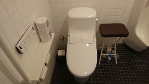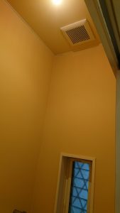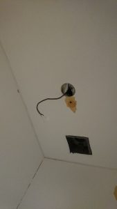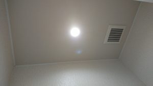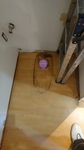 上記は既存のトイレです。AM8:30~ 便器の撤去を行い、照明器具をダウンライトに取替てほしいとの依頼がありましたので、ダウンライトの穴開けをしました。