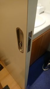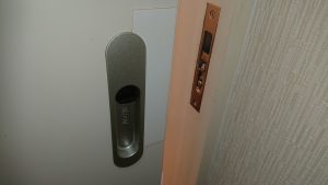 お年寄りの方など、鍵がかけにくいとのことでしたので、朝一番、建具を引き上げてもらい鍵の取替も行いました。