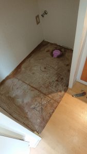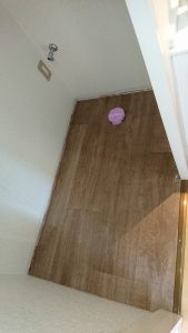床は、土足でも大丈夫な店舗事務所用のクッションフロアーにて施工しました。