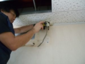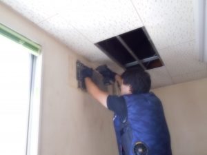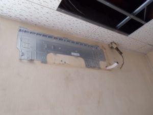 室外機側はここでそのままにしておいて、室内側の工事に入ります。