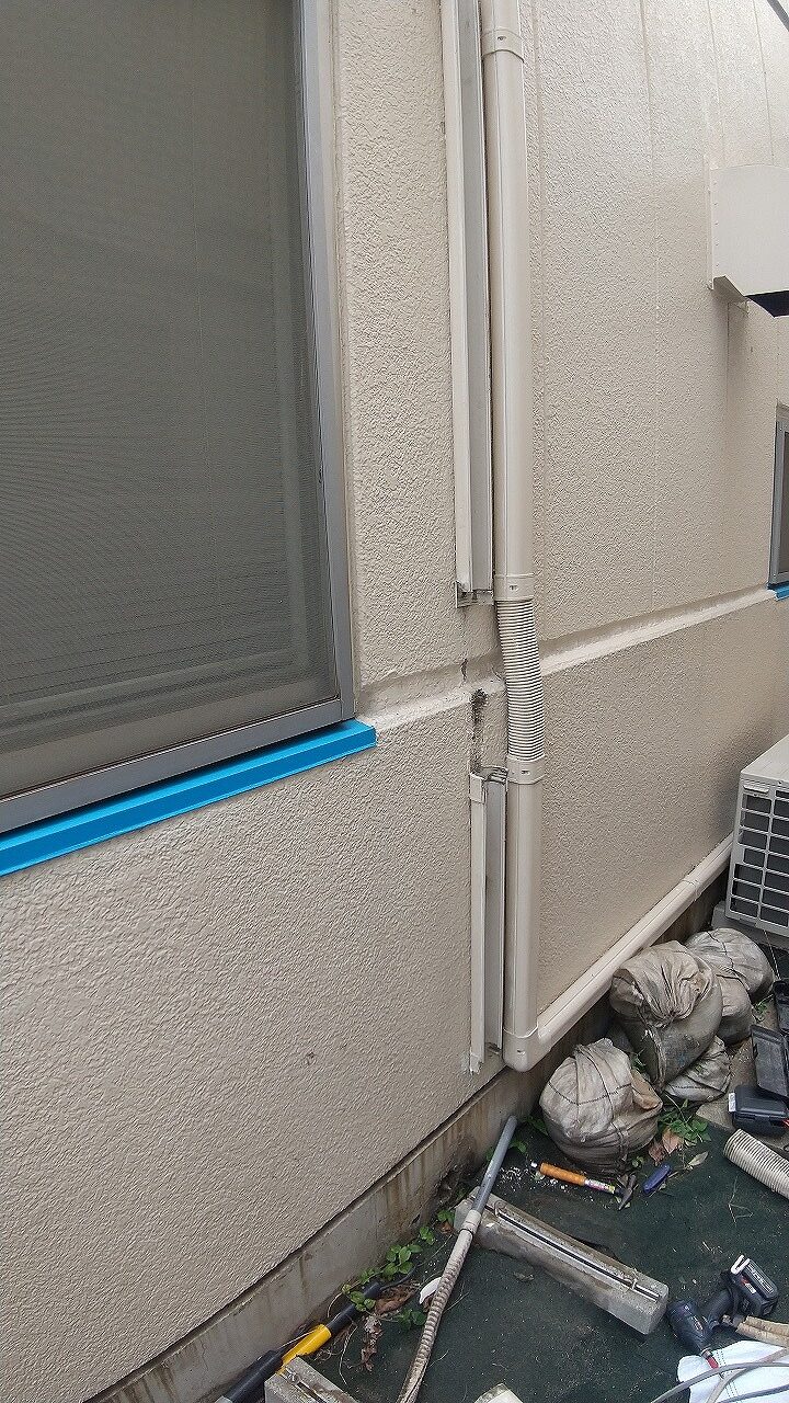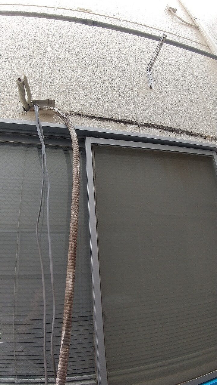 こちらのエアコンの配管や配線は隠蔽ではありませんので新しく取り替えます。化粧カバーも上から塗装をされておりますので普通に外すことができず叩き割りながら全て撤去し、新しい化粧カバーに取り替えます。