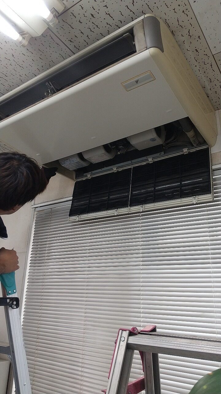 1台は完全にコンプレッサー不良の故障をしたため、まったくエアコンの役目を果たしてません。取り急ぎ見積書を作成し即時注文を頂きましたので最短で工事日を決定し着工したのが7月27日のことです。