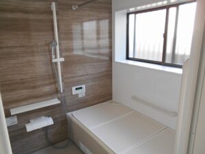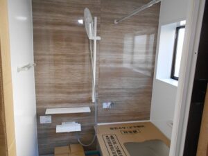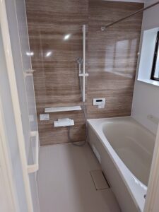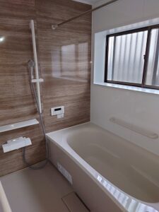 今回は、在来浴室からシステムバスへリフォームさせて頂きました。それと同時に給湯器も取り替えました。現在はボイラーで灯油を入れないといけない手間もあり、ガス給湯器に取替え、自動湯はりや追い炊き機能付きの給湯機に変更しました。