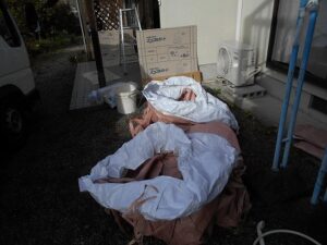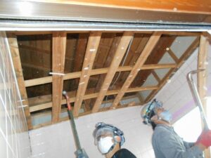 1日目 まずは在来浴室の解体です。天井をめくり、壁・窓廻り・床を斫り解体していきます。