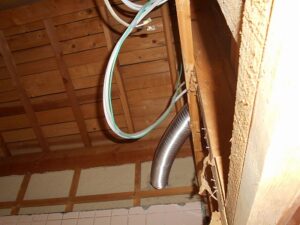 2日目 給排水の移設・追い炊き配管新設の水道工事と浴室暖房乾燥機のダクト仕込みや専用回路増設・小口配線の電気工事です。