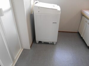 6日目 洗面所の天井・壁のクロス・床のクッションフロアーを貼り替えです。
