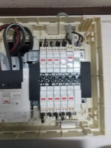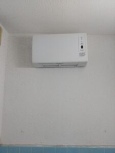浴乾専用回路の電気工事です。今回は壁掛タイプのパナソニック製のバスカンという商品です。電圧は200ボルト仕様となります。分電盤から配線用の貫通穴まではモールで配線を隠蔽し外部は電線管工事となります。アースは分電盤には着てませんので単独で打ち込みアース棒で接地いたしました。