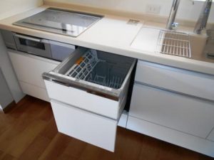 浄水器をビルトインにし、キッチンの水栓は手を触れずに使用できる自動水栓をつけました。食器洗い機も購入後間も無かった卓上用からビルトインにしてキッチンをすっきりとさせました。コンロはガスから奥様の念願のIHへと。