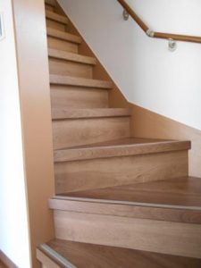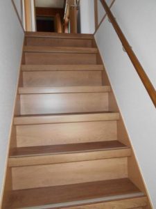 階段は既存の階段の上から踏み板・蹴込み板・段鼻のノンスリップを貼っていくリフォーム階段で綺麗にしました。また今まで取り付けてなかった手すりも取付しました。