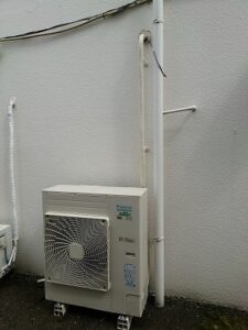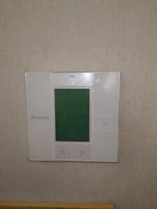 配管接続・ドレン工事・電線繋ぎ込みをし、リモコンを取付てパッケージエアコンの更新工事完了です。