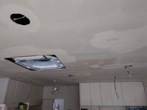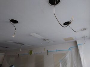 1日目   照明器具をすべて撤去し、ダウンライトの新設やライティングダクトに変更などの配線工事や、スピーカー線の隠蔽工事など施工しました。
