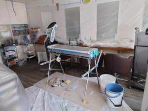 2・3日目  クロスをめくり、パテ埋めをし、クロスを貼ります。