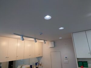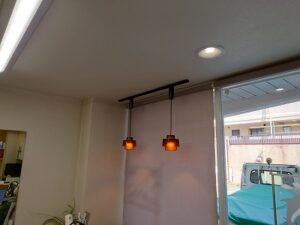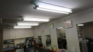 LEDベースライト・ダウンライト更新で店舗全体が明るくなり、スポットライトやペンダントでおしゃれに演出出来ました。壁クロスのアクセント貼りでさらにおしゃれ感を!!