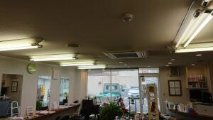 今回は、神戸市西区池上3丁目の美容院さん、「ヘアーフェリーチェ」様のパッケージエアコン・LED照明・内装クロス更新工事をさせて頂きました。