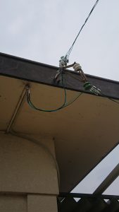 上記2枚が改修後の写真です。今回は、DV線を使用しました。DV線とは、電柱から建物に電気を引き込む架空引込配線に使用される引込用ビニル絶縁電線です。DV線はメッセンジャーワイヤーを使用せずに施工できます。