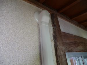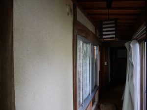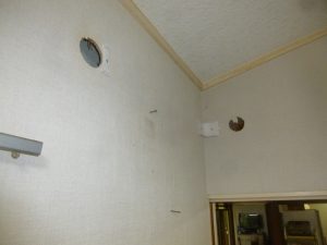 廊下側の壁。分かりにくいでしょうが上部に穴が開いてます。