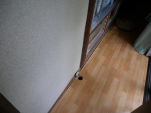 そして最後の1箇所。廊下の床にもスリーブを設けます。これで穴開け3箇所は完了です。