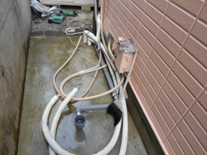 本日エコキュートの入れ替えをしました。今年に入って取替は3台目で10年以上を経過したエコキュートがいよいよ買い替え時期に入ってまいりました。わたくしの自宅のエコキュートも同様でびくびくしている今日この頃です。メーカーの部品保有年数がここ最近短縮されて修理できないケースがほとんどですが、今回はタンクからの水漏れで最早パーツの問題ではありませんし14年を経過。お客様の方から買い替えをご希望されました。