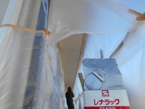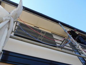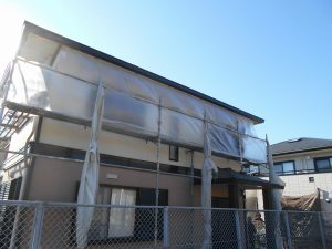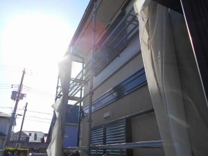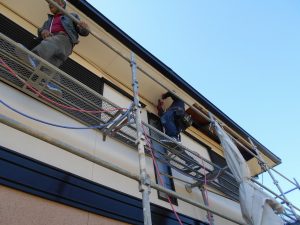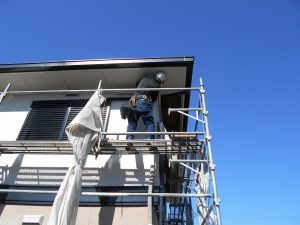 軒天の張替えには足場が必要となりますので、先ずは足場を組みます。