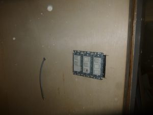 コンセントやスイッチの取り付けも済ましております。壁に穴を開けながら以前の店舗の時の配線も利用しつつ、コンセントを増設したり、また不要な配線処理をしたりで、新築より手間がかかります。久しぶりの店舗改装のお仕事をさせていただいております。