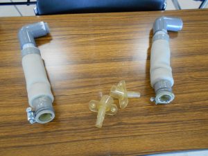 簡単な事でした。上の写真のように室内機のドレン管繋ぎ口(樹脂製)が見事に2台とも折れドレン管が完全に外れていました。